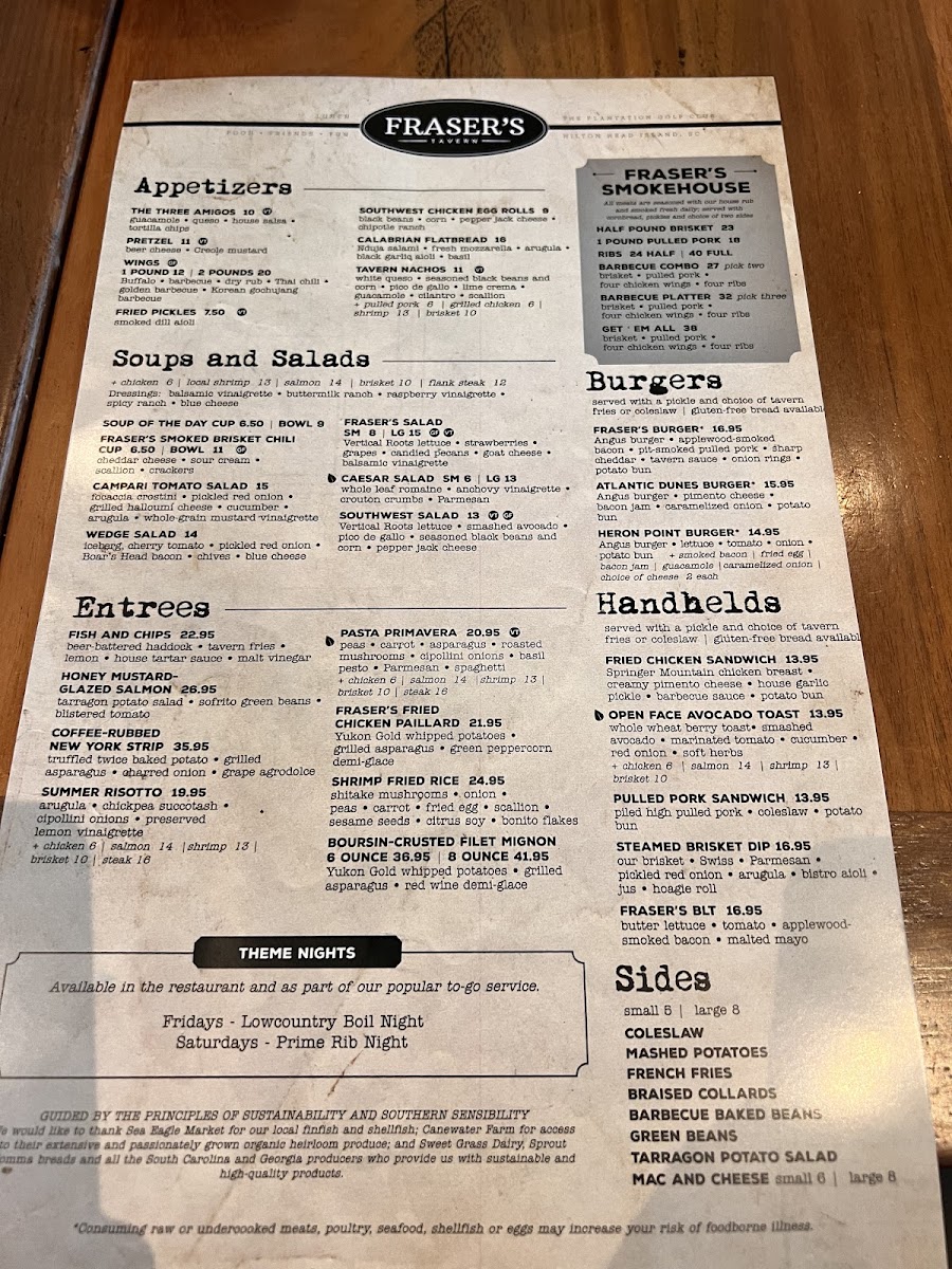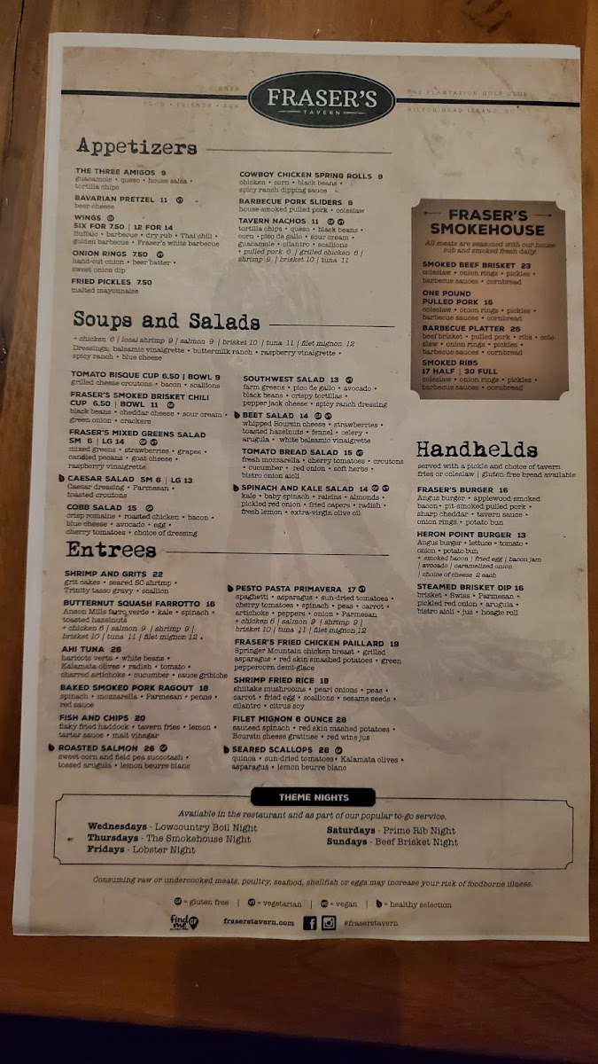 Welcome to Fraser's Tavern, a gem nestled on Hilton Head Island's scenic coast at 100 N Sea Pines Dr. This inviting eatery combines a laid-back atmosphere with a diverse menu that reflects both comfort and sophistication.