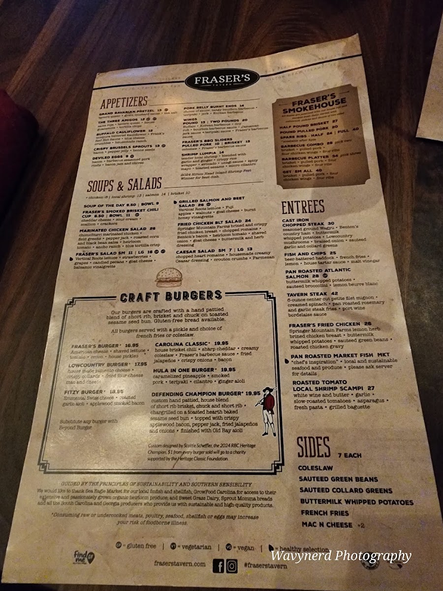Fraser's offerings include a range of mouthwatering dishes, from the crowd-pleasing Carolina Classic Burger to the enticing pork schnitzel, each crafted with care. Don’t miss the sautéed green beans or the rich caramelized onion and gruyere spaetzle as sides. For those craving something special, themed nights like Lobster Night and Prime Rib Night elevate the culinary experience.